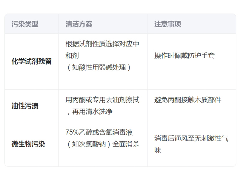 - ?初步清理?:實驗結(jié)束后立即用濕布擦拭臺面,清除試劑殘留和灰塵,避免污漬固化?。